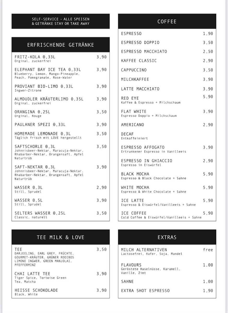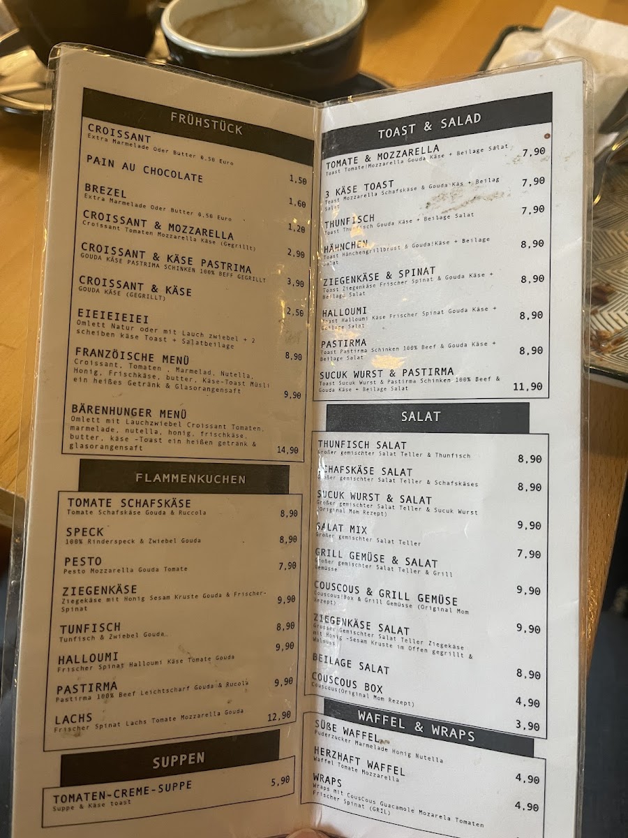 - Breakfast Items: Traditional breakfast offerings including croissants, pretzels, and typical breakfast dishes referred to as Frühstück.